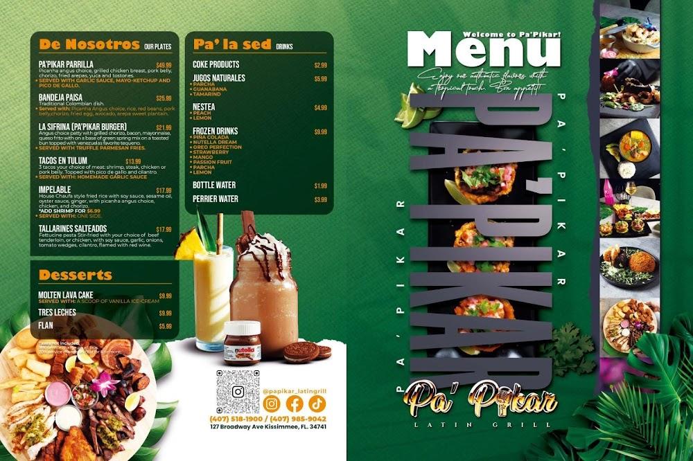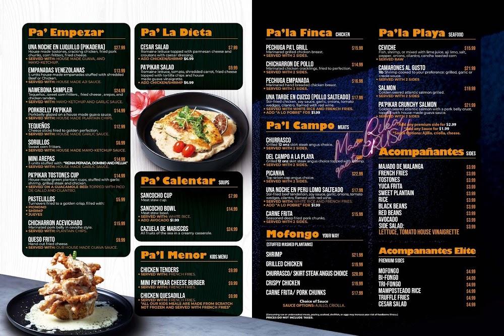 The menu at Pa'Pikar Latin Grill boasts a diverse selection of dishes inspired by Latin cuisine. Begin with appetizers such as Colombian Empanadas or the Pa' Pikar Sampler. For entrees, sample the signature dishes like the Bandeja Paisa or Mofongo, each prepared with fresh ingredients. Vegetarian options appear alongside hearty meat dishes, catering to different preferences.